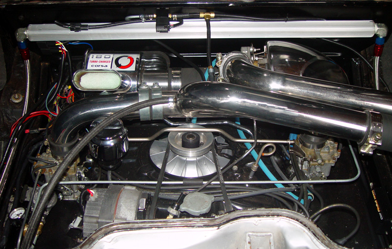 The stock turbo induction system had one draw through carb ahead of the Rajay