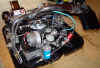 cooler, oil thermostat and exhaust/waste gate fit in the engine compartment. Still a lot of plumbing and wiring to do.